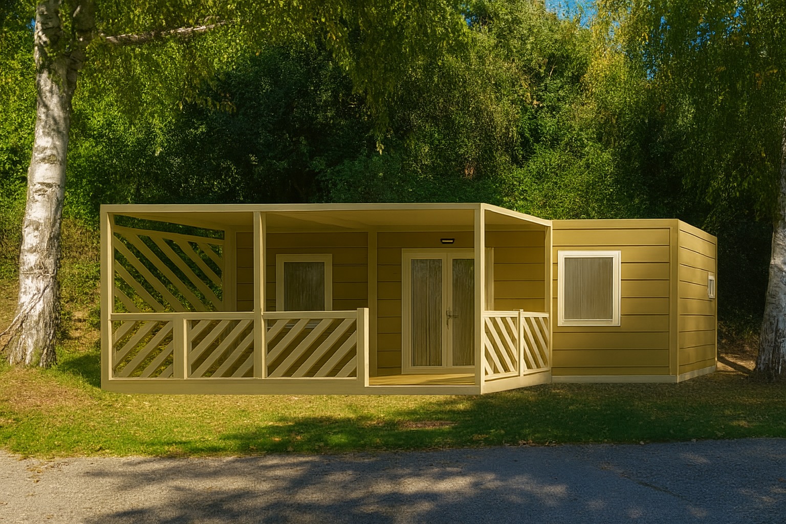 Die Mobile Home Rosa bietet 24 m² Komfort, gedacht für zwei Personen.
